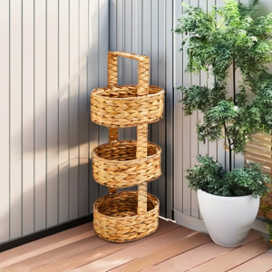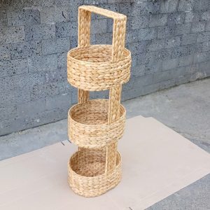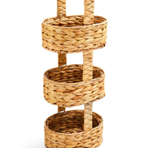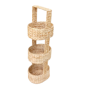 | Other details | This basket stand is versatile and functional, making it ideal for organizing household items. It can serve as a stylish storage solution for fruits and vegetables in a kitchen, toiletries in a bathroom, or miscellaneous items in a living space. Its vertical design helps maximize storage capacity while occupying minimal floor space, making it particularly useful in small rooms. The stand is supported by a metal frame under the weaving that gives it a solid structure. |